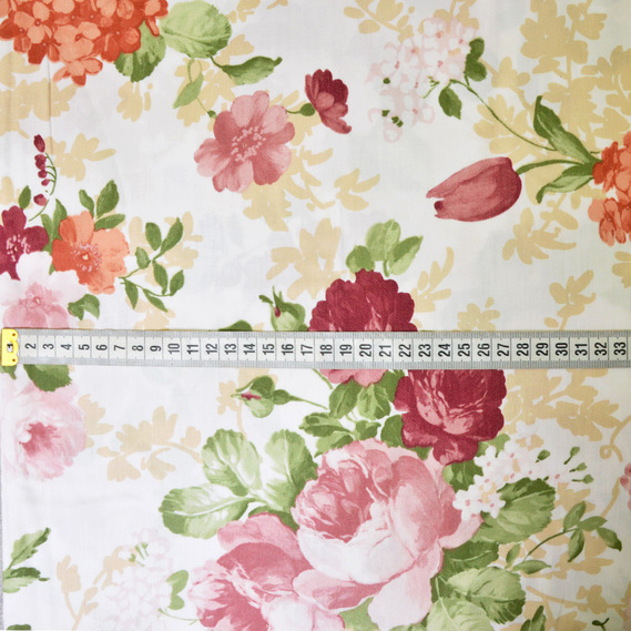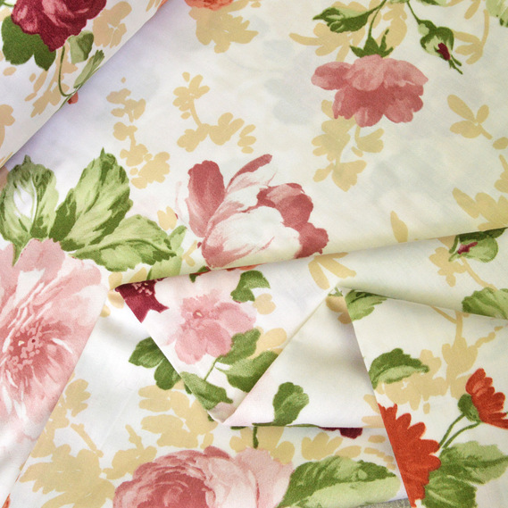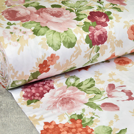 Satin printed fabric V-R120784/12 Розана марсала/біла