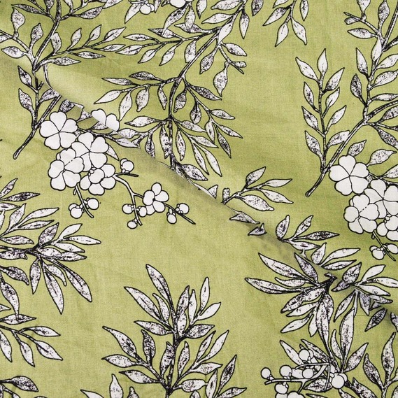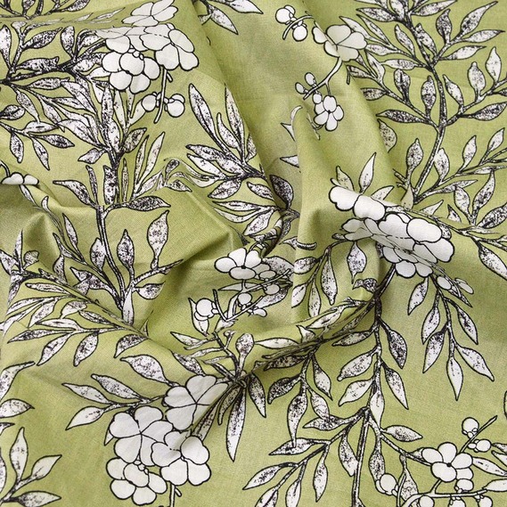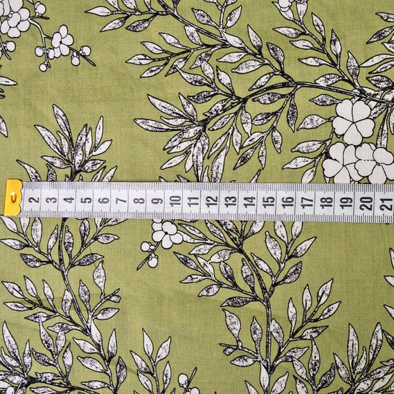 The fabric is stretch poplin гілочка хакі/біл, Флора