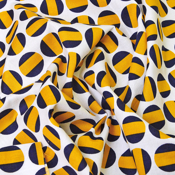 The fabric is stretch poplin коло гірчиця/т.синій, Геометрія