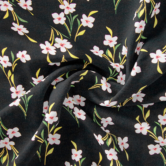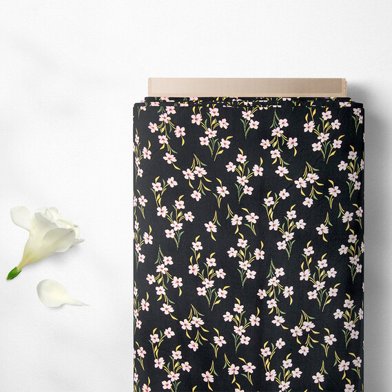 The fabric is staple twill with a print V-208/1 пролісок чорний, Квітковий