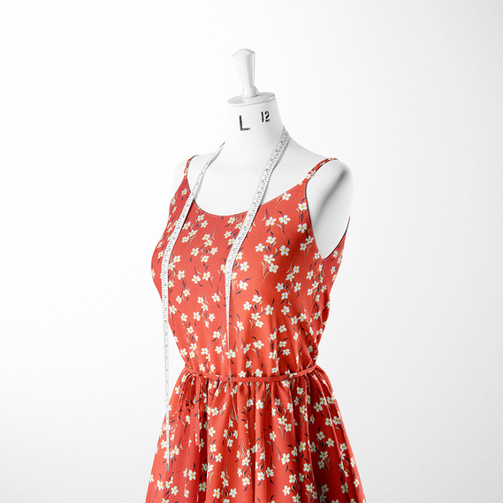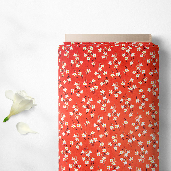 The fabric is staple twill with a print V-208/3 пролісок теракот, Квітковий