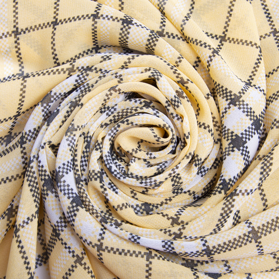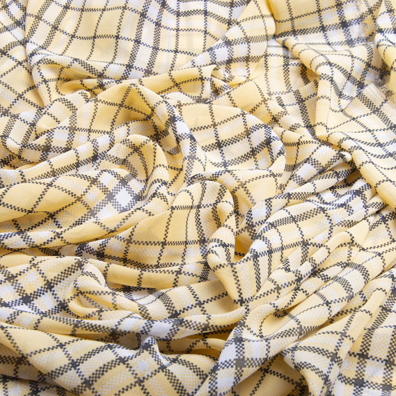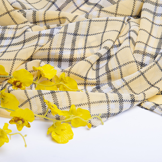 Chiffon fabric with print клітина жовтий