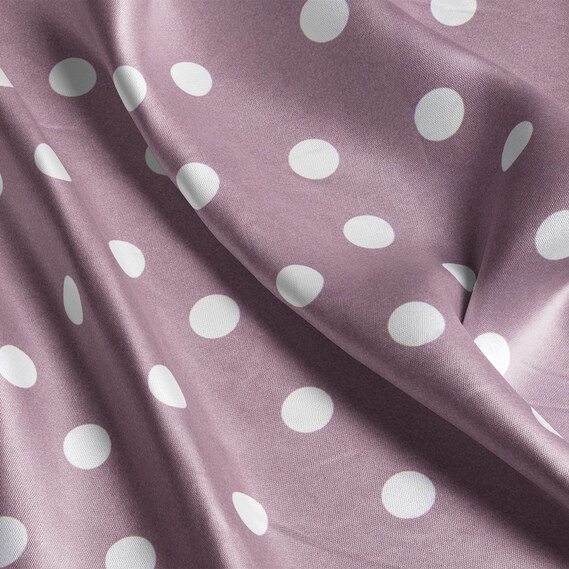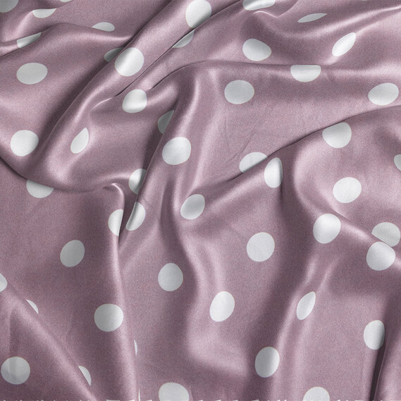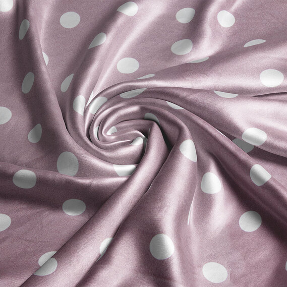 Dress fabric satin silk stretch — lightweight fabric for dresses, blouses, pajamas, and accessories. горошок темний фрез
