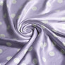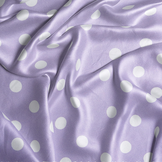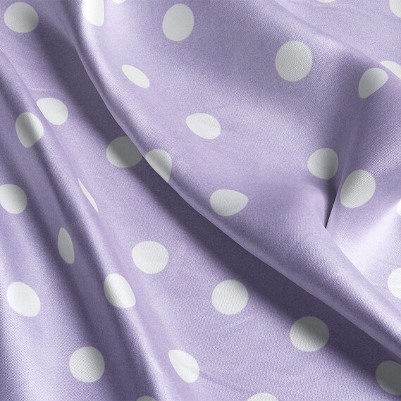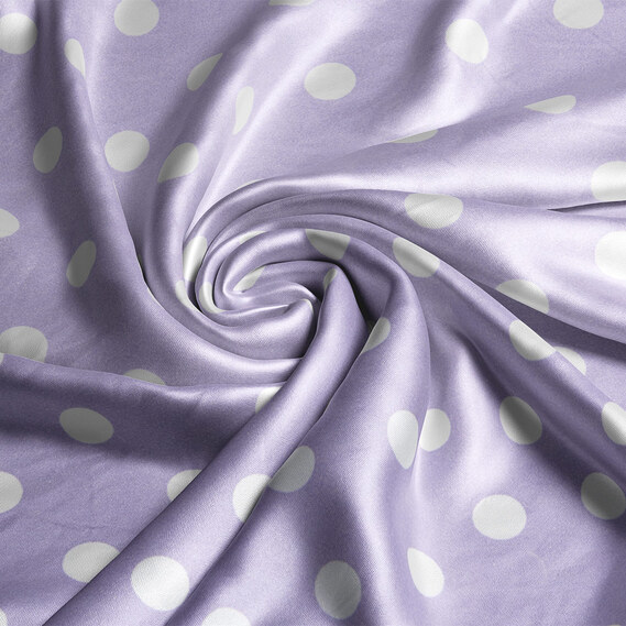 Dress fabric satin silk stretch — lightweight fabric for dresses, blouses, pajamas, and accessories. горошок світлий бузок