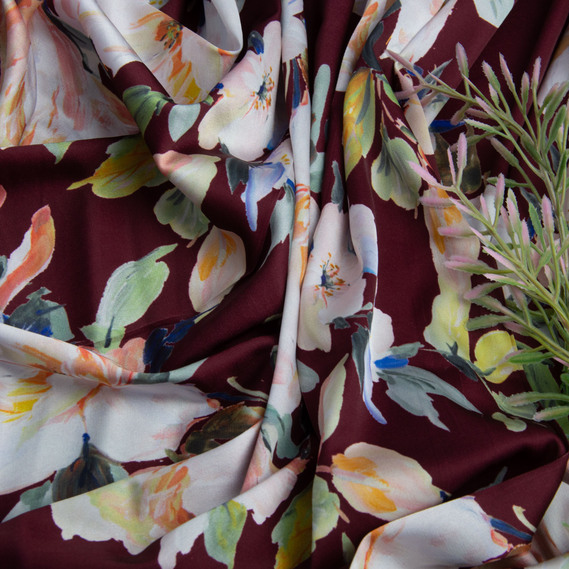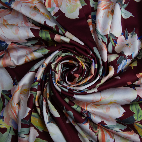 Dress fabric satin silk шантрія бордо