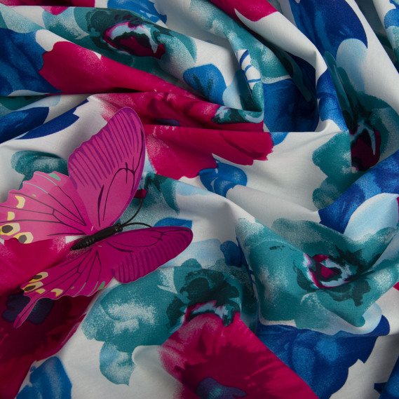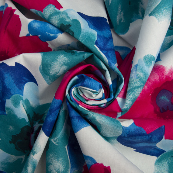 Stretch poplin fabric гібіскус малиний