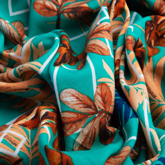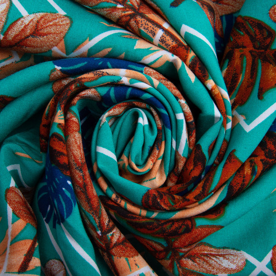 Staple fabric viscose, natural dress fabric, for blouses, dresses, skirts манстера т/бірюза