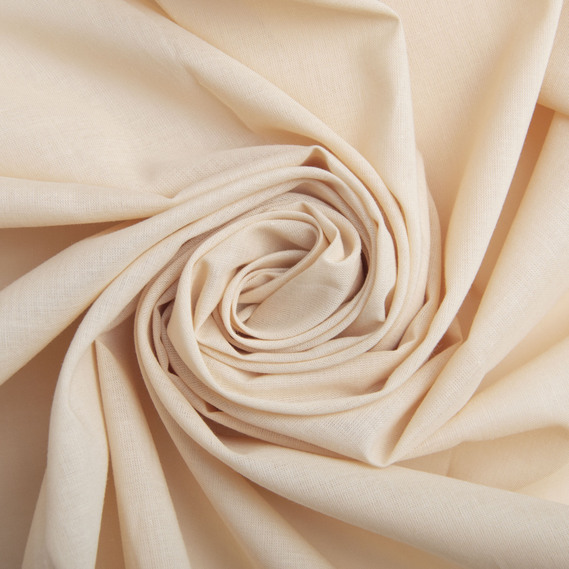 Plain batiste fabric 145 cm 74 g/m2 cotton, natural — for summer dresses and blouses, shirts, children’s clothing беж