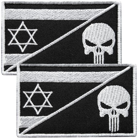 Israel and Punisher Skull Velcro Patch Set, Embroidered 2x3 inch Patches