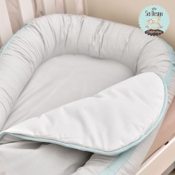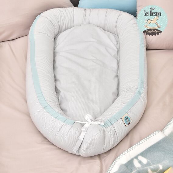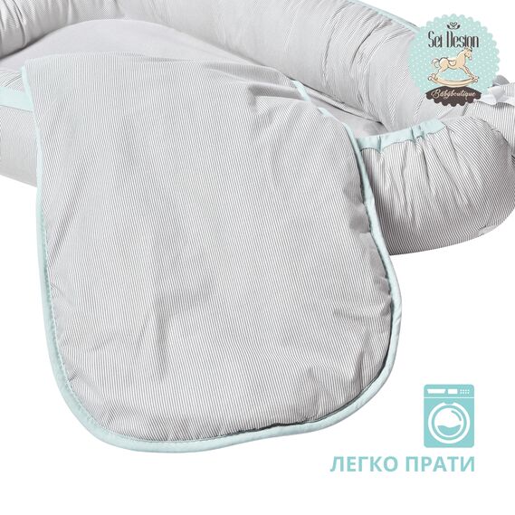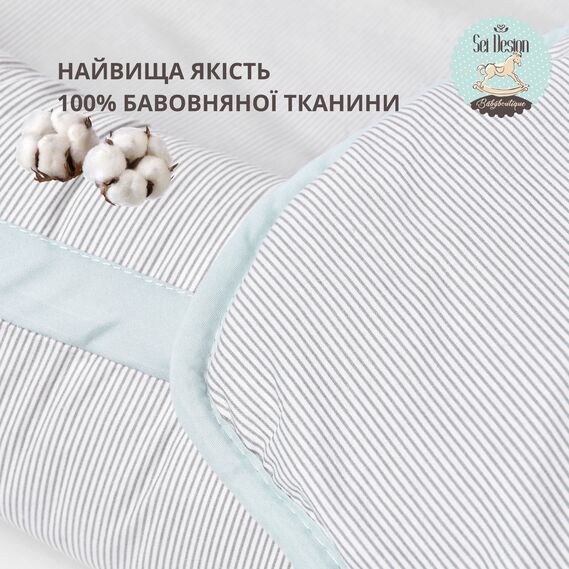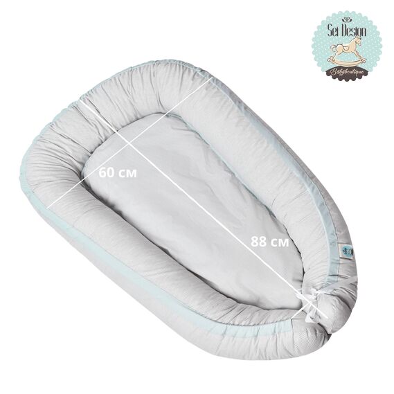 Cocoon nest positioner for babies sleep SEI DESIGN cotton 88x60x12 cm смужка сіра