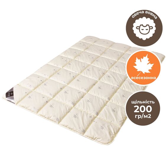 Sei Design wool blanket 200х200 см 200 g/m2 all-season, wool, microfiber овечка молоко новая