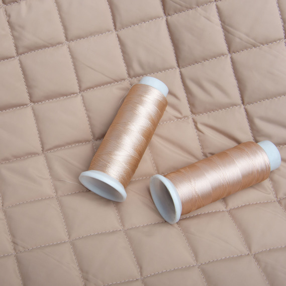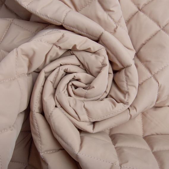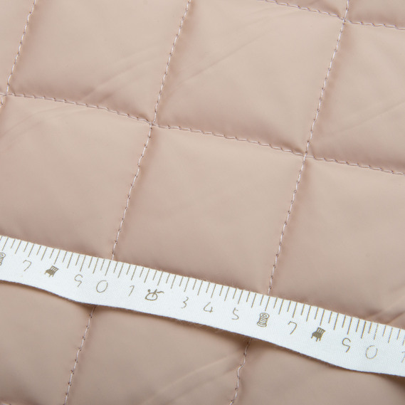 Quilted lining fabric with insulation, 7.5x7.5 cm, 100g/m synthetic fiber + spunbond, plain raincoat fabric, 140 cm, 210 гр/м2 беж