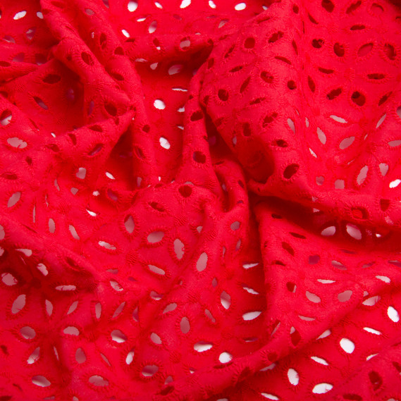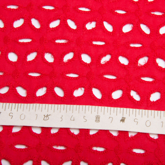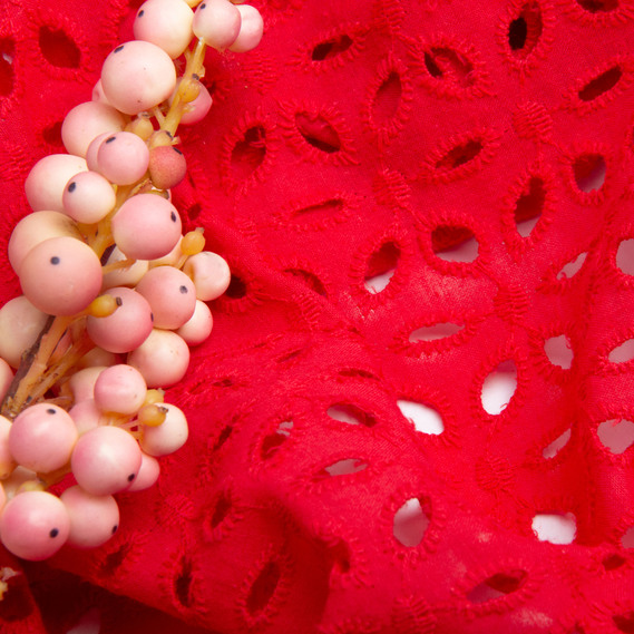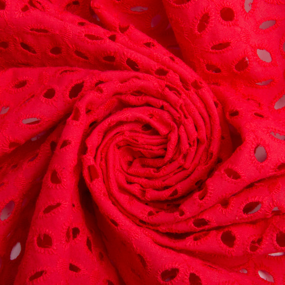 Batiste broderie fabric Lola, 130 cm wide, 130 g/m², cotton, natural fabric suitable for clothing червона