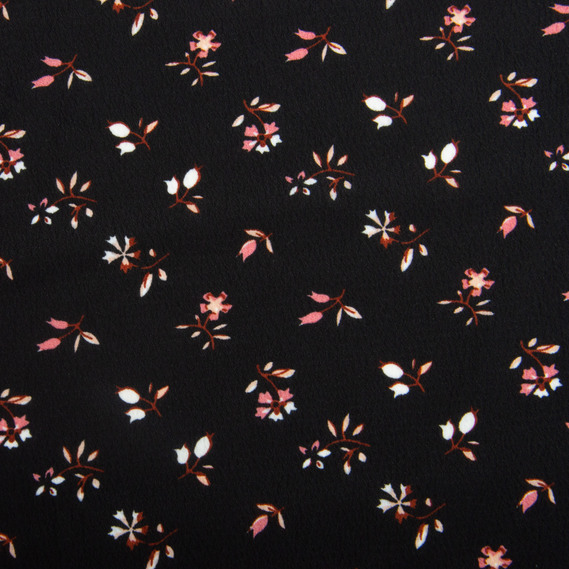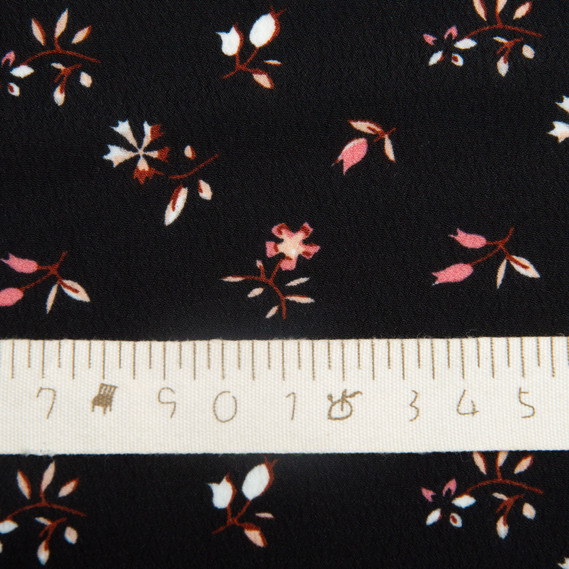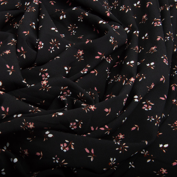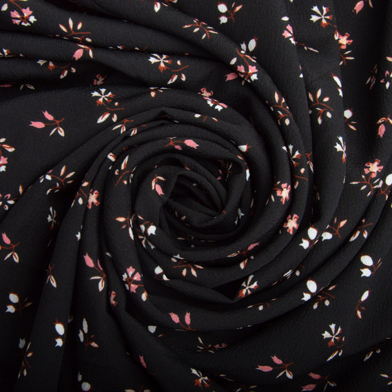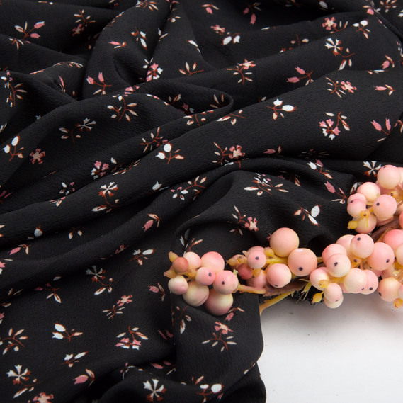 Lightweight crepe dress fabric, 150 cm wide, 110 g/m², suitable for dresses, skirts, trousers, and accessories квіточки чорна