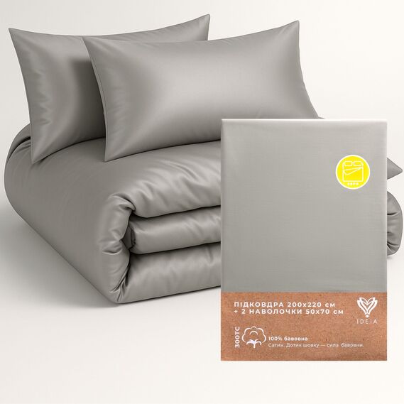 Bedding set double IDEIA duvet cover 200x220 cm + 2 pillowcases 50x70 cm premium sateen cotton сірий/беж