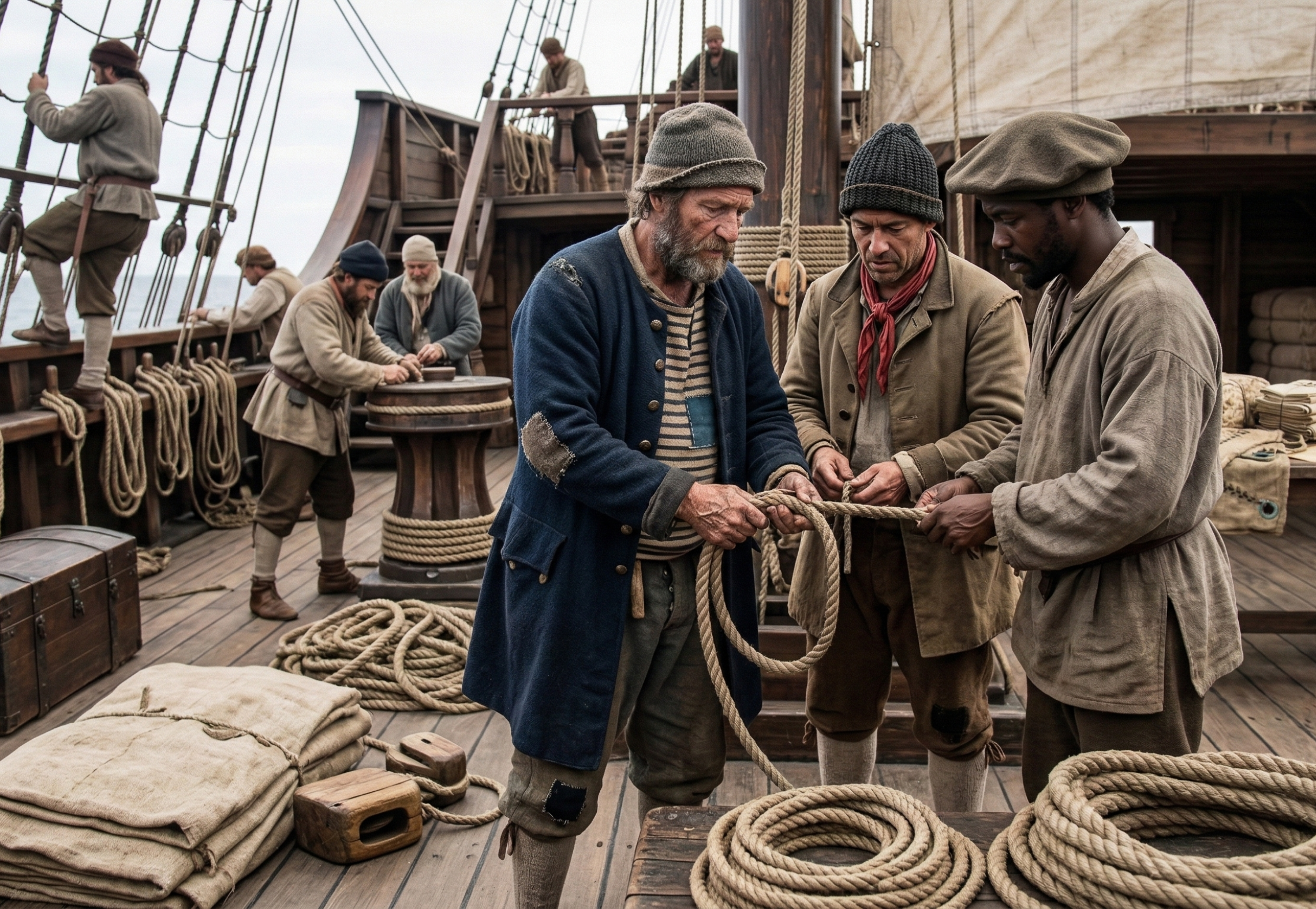 Ropes were equally important. They were produced from plant fibers such as hemp, flax, and sometimes sisal. Ropes held the masts in place, controlled the sails, and were used for mooring ships. The safety of the vessel and its entire crew directly depended on their quality.