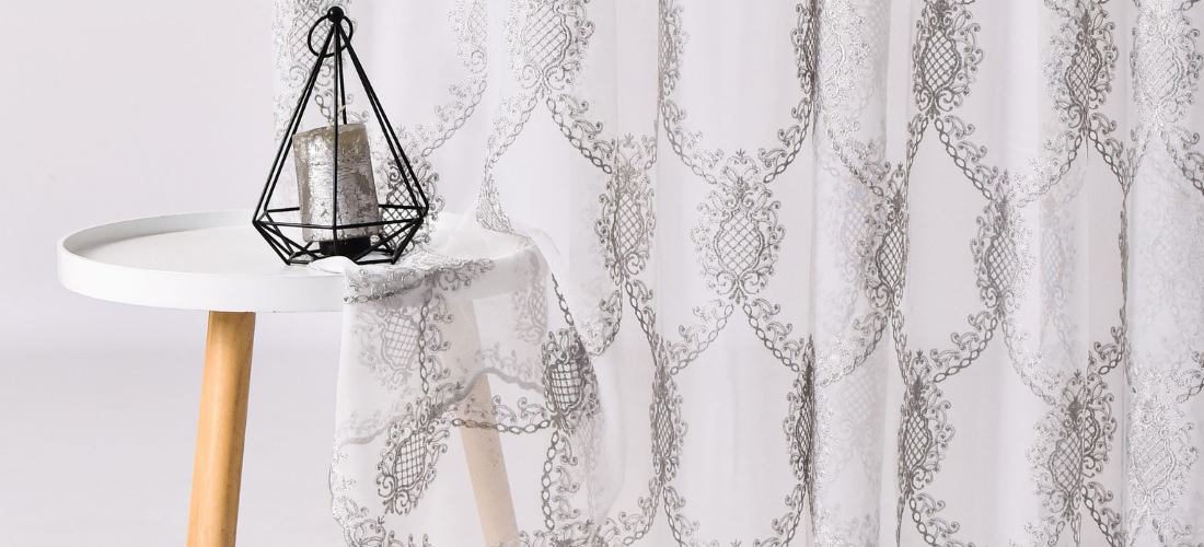 Sheer fabric with embroidery, 320 cm, 66 gr/m2 V-gri