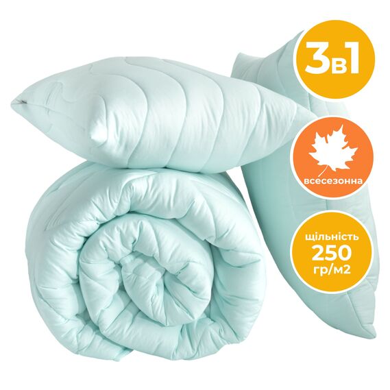 Набір Tropical TM IDEIA євро ковдра 200х220 см + 2 подушки 50х70 см, антиалергійний м`ята