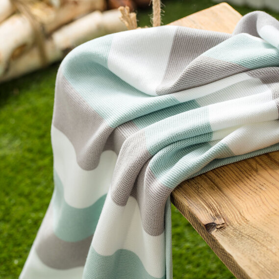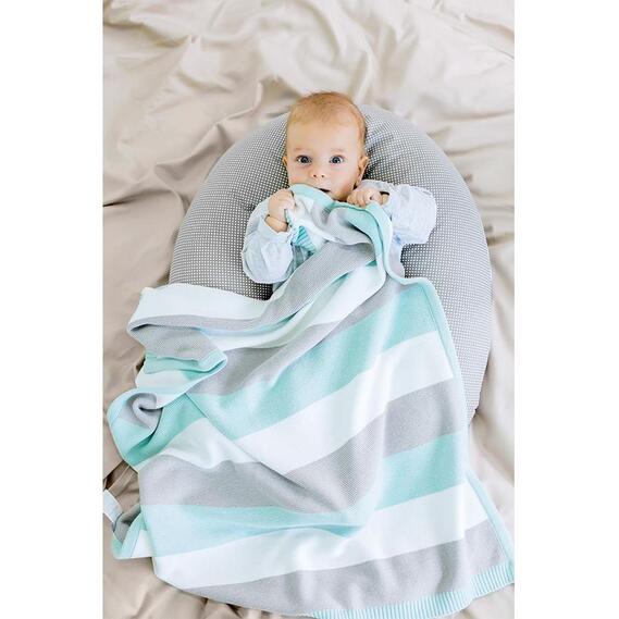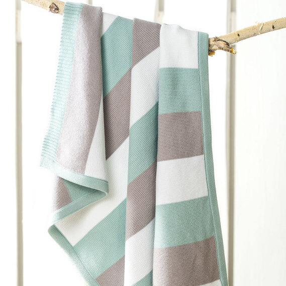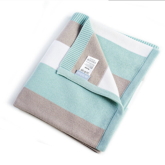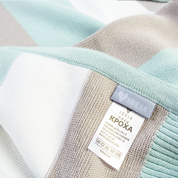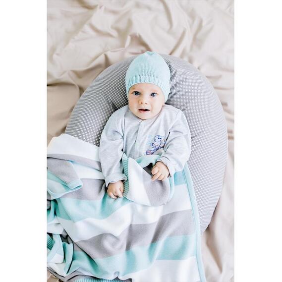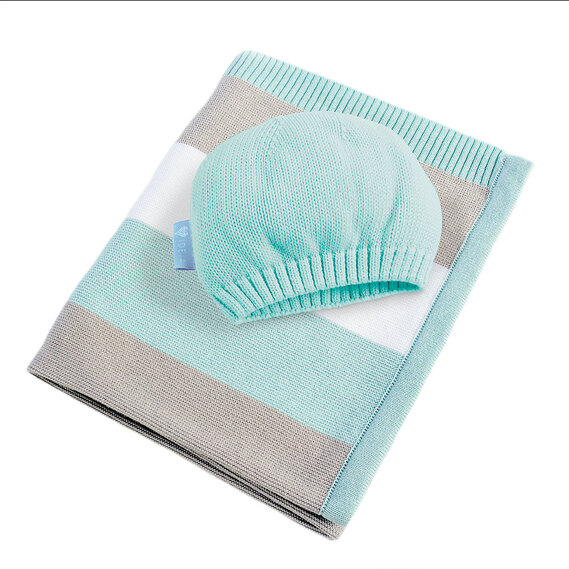 Плед вязаный и шапочка полоса ТM PAPAELLA 70х90 см св/зелений