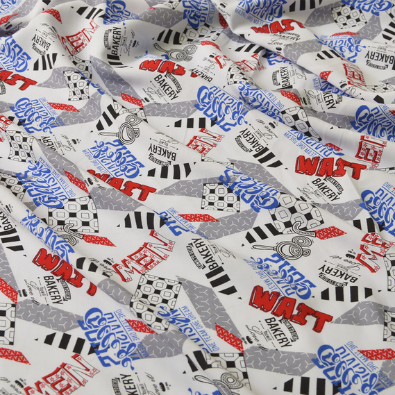 Ткань плательная вискоза штапель Эпизоды 115 гр/м2 wait червоний, Написи