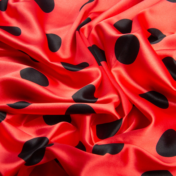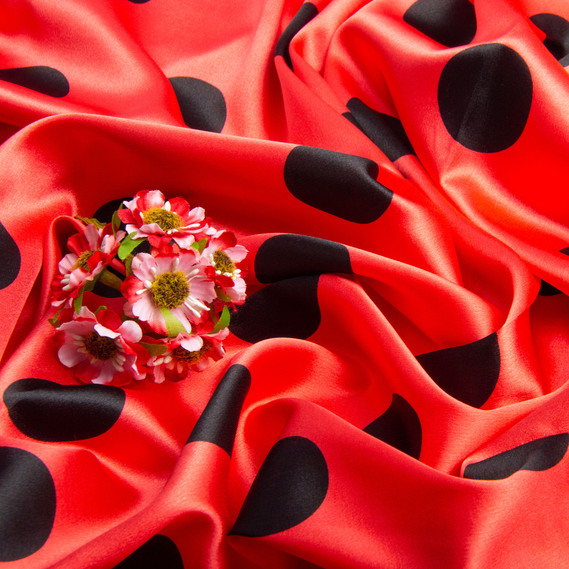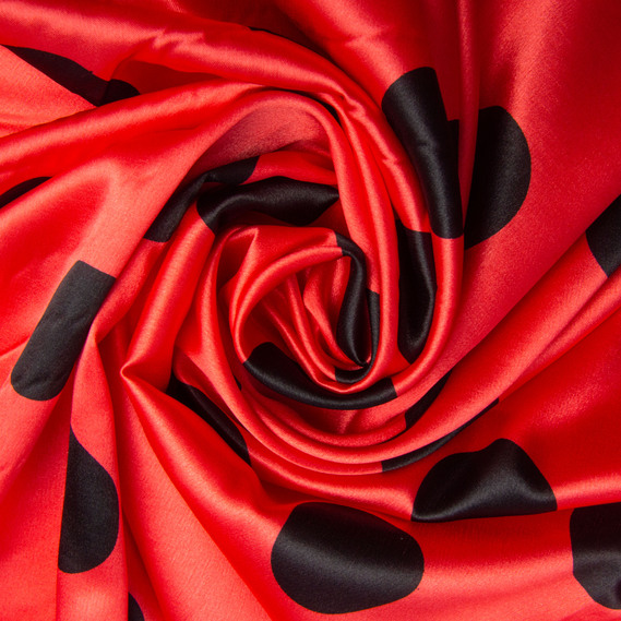 Ткань плательная атлас Горохи maxi червоний