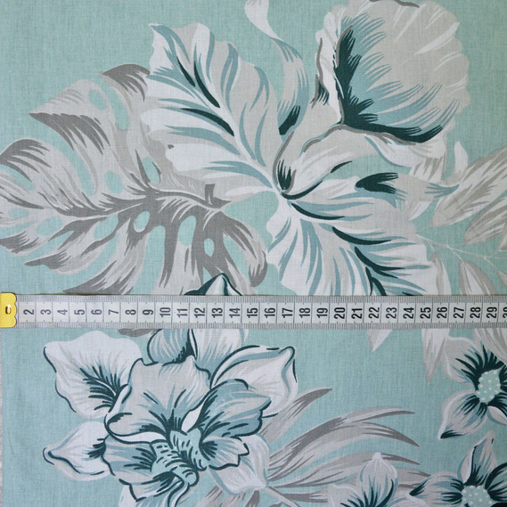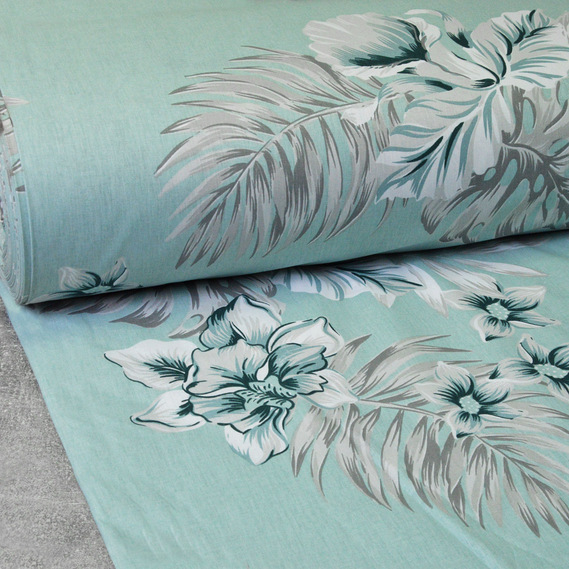 Ткань бязь ранфорс для постельного белья 2,4 м V-G6788/1 монстера ментол