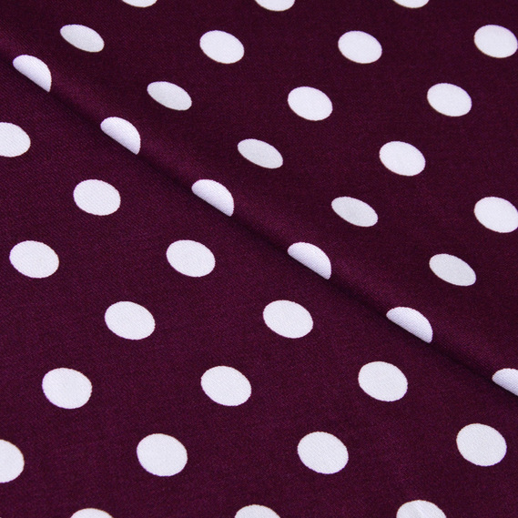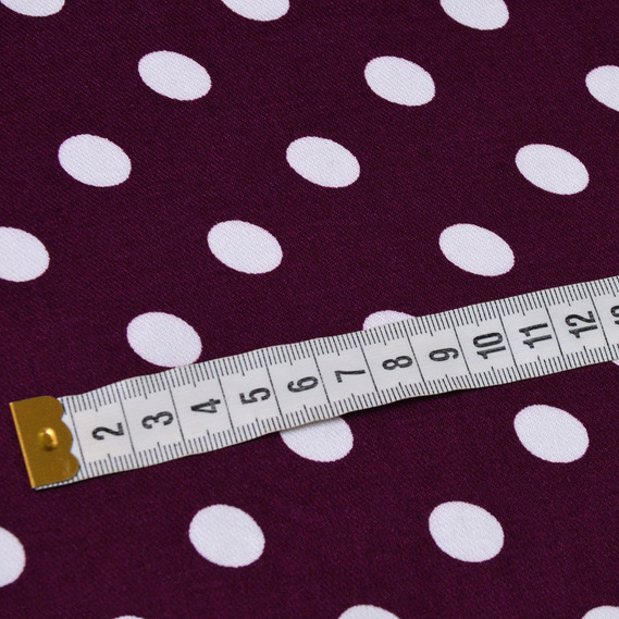 Штапель-твил Горох серед.білий на сливовому, Горох