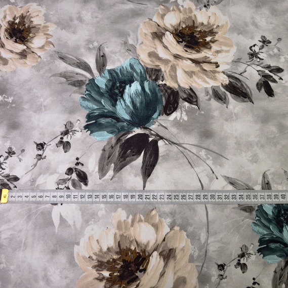 Ткань портьерная с рисунком Пион V-03 сіра, Квітковий