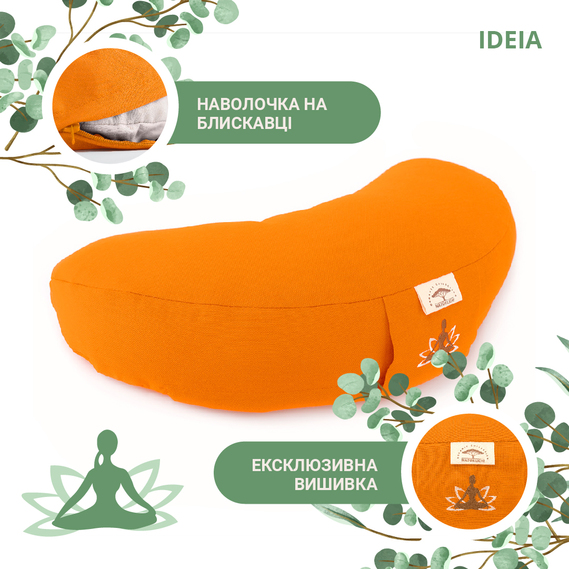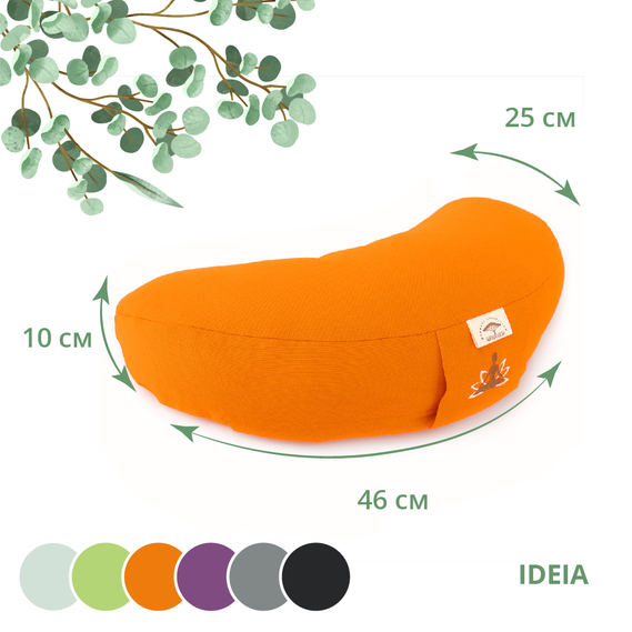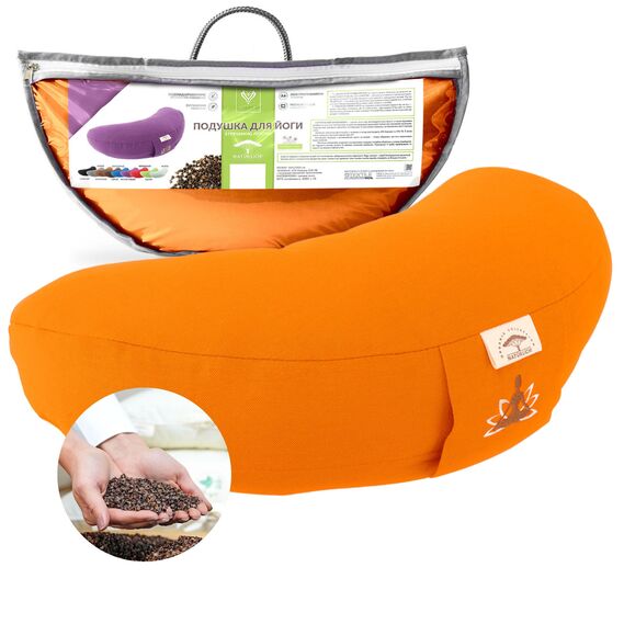 Подушка Болстер для йоги и медитации IDEIA с гречневой шелухой, йога, гречневая шелуха, гречиха 46х25х10 см помаранч