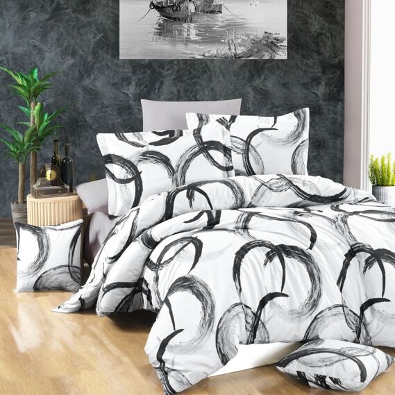 Ткань бязь ранфорс для постельного белья 2,4 м V-М03007 5 акварель чорна, Акварель