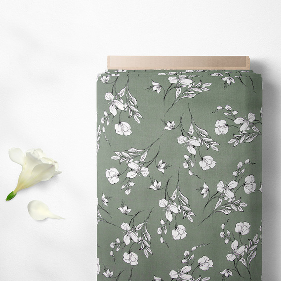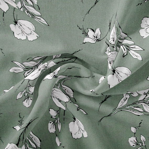 Ткань штапель твил принт, 140 см, 160 гр/м2, для платьев, блузок, юбок Лайла полин