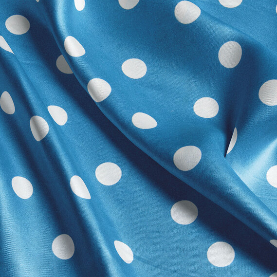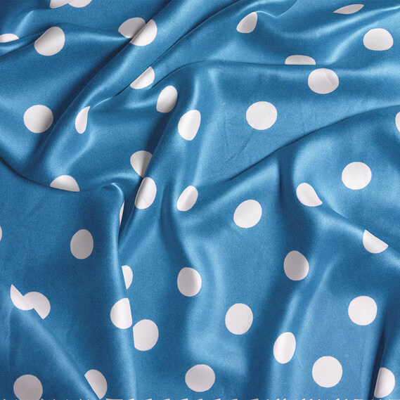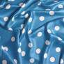 Ткань плательная атлас шелк стрейч 145 см 95 гр/м2 легкая ткань для платьев, блуз, пижам, аксессуаров горошок темно блакитний