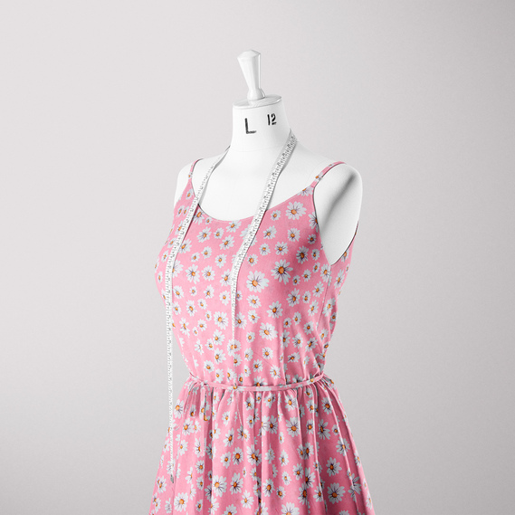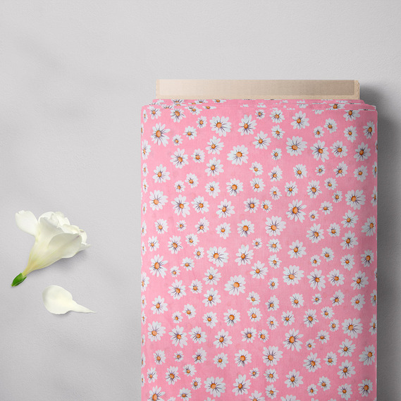 Ткань поплин ромашка рожевий