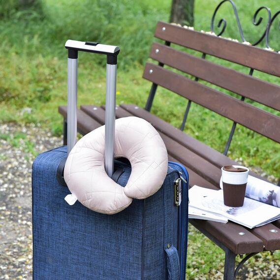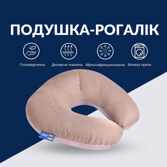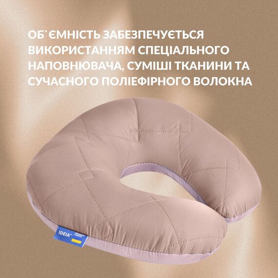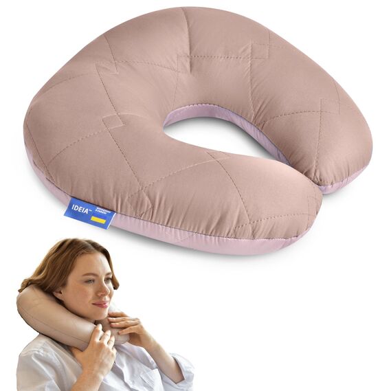 Подушка рогалик 32х32 см Travel IDEIA для путешествий для шеи и головы дорожный антиаллергенный пудра/беж