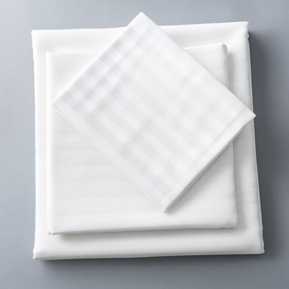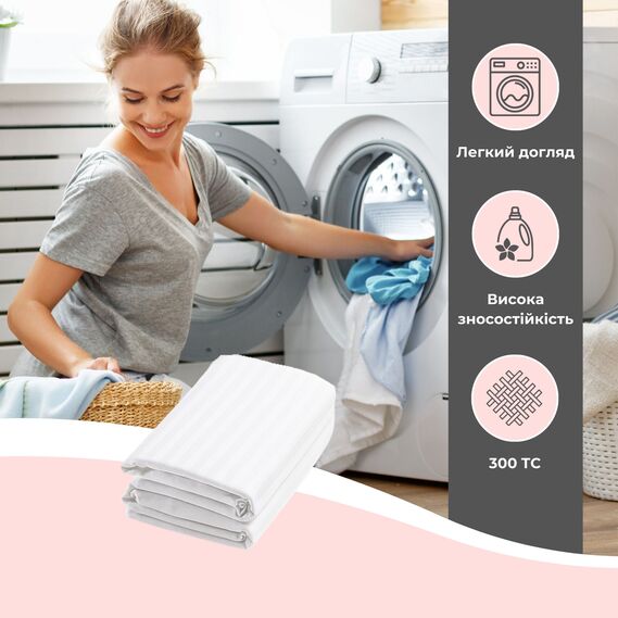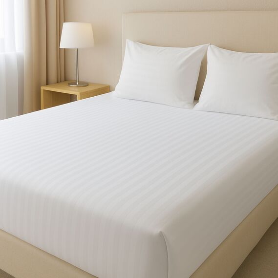 Простынь полуторная 145х215 см сатин IDEIA, хлопок, для отелей и дома, жаккард білий у смужку