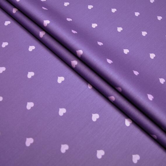 Ткань хлопок сатин для постельного белья, натуральная ткань, постельное белье, 120 гр/м2 S-025B Сердечка фіолет