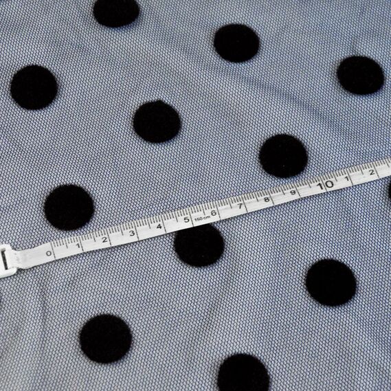 Ткань сетка стрэйч Горох с флоком темно синьо чорна