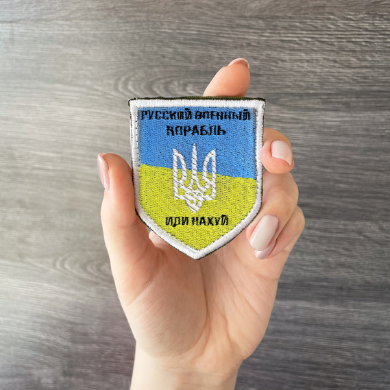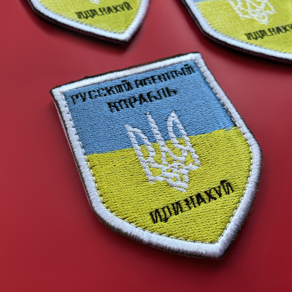 Шеврон нашивка на липучке Русский военный корабль..., вышитый патч 6х9 см