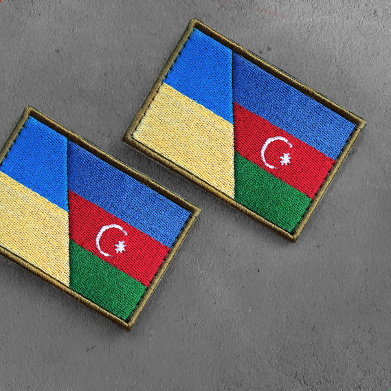 Шеврон нашивка на липучке флаг Украины и Азербайджана, вышитый патч 5х8 см