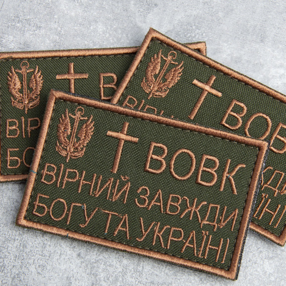 Шеврон на липучке Вовк вірний завжди 5х8 см