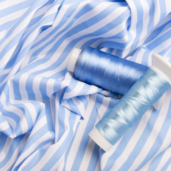Ткань рубашечная хлопок Полоса узкая блакитна
