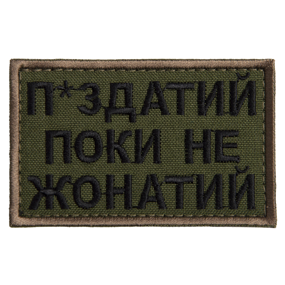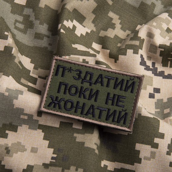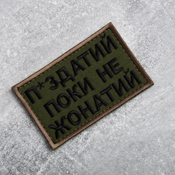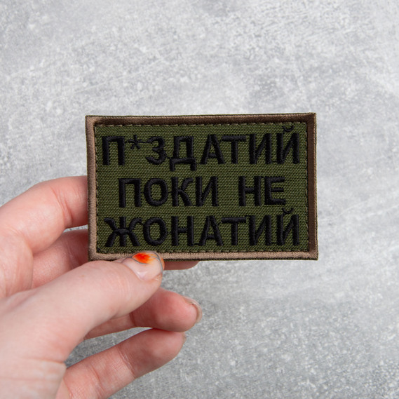 Шеврон нашивка на липучке Пока не женат но..., вышитый патч 5х8 см олива