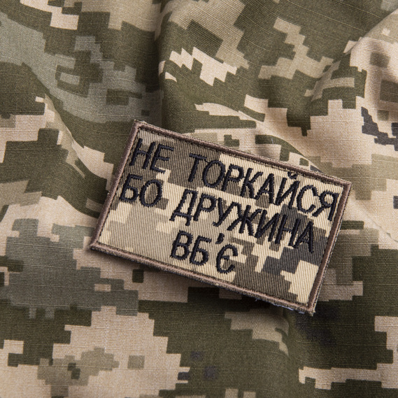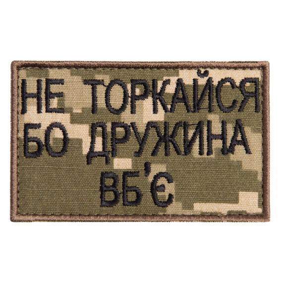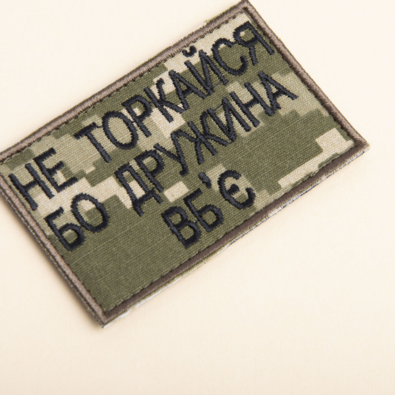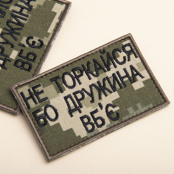 Шеврон, нашивка на липучке Не торкайся бо дружна вб`є, вышитый патч 5*8 см піксель