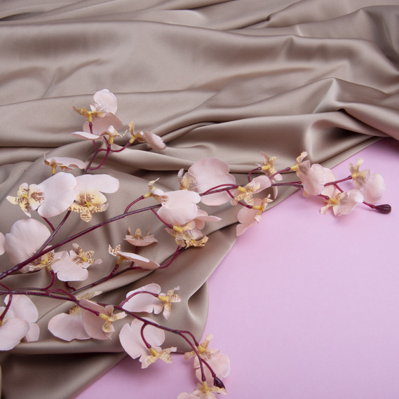 Ткань плательная атлас шелк Vanessa беж/пудра