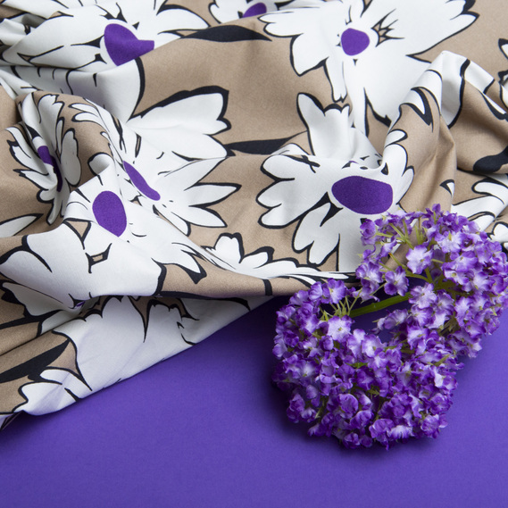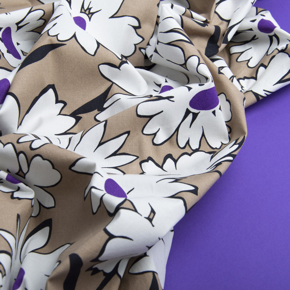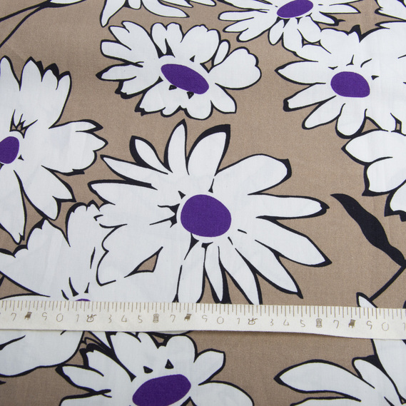Ткань поплин стрейч V-87 Ромашки беж, Квітковий