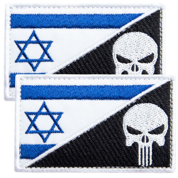 Набор шевронов 2 шт с липучкой Флаг Израиля и Череп Карателя 5х8 см, вышитый патч