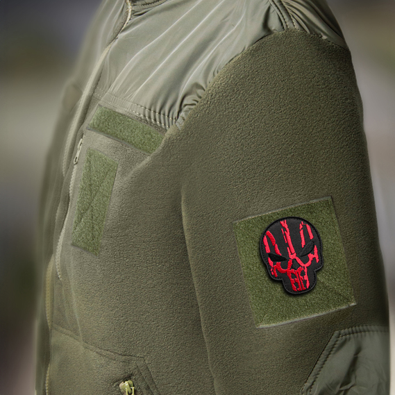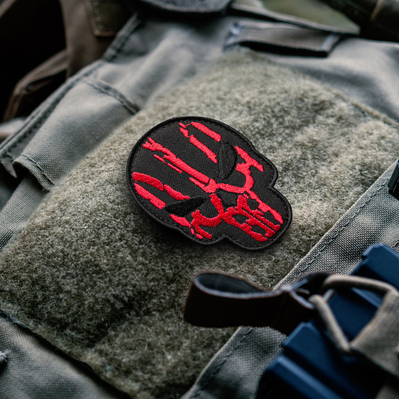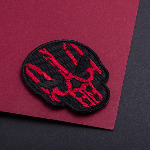 Шеврон нашивка на липучке Череп Герб Украины 7,5х6 см, вышитый патч червоний