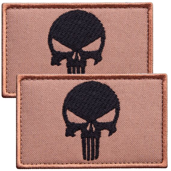 Набор шевронов 2шт с липучкой PUNISHER Череп Каратель кемэл, вышитый патч 5х8 см