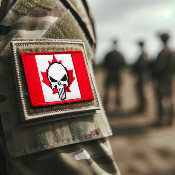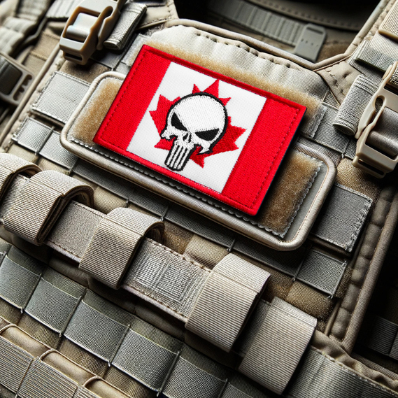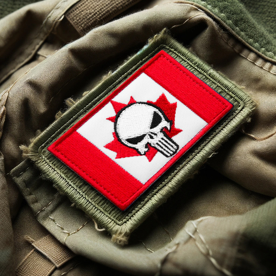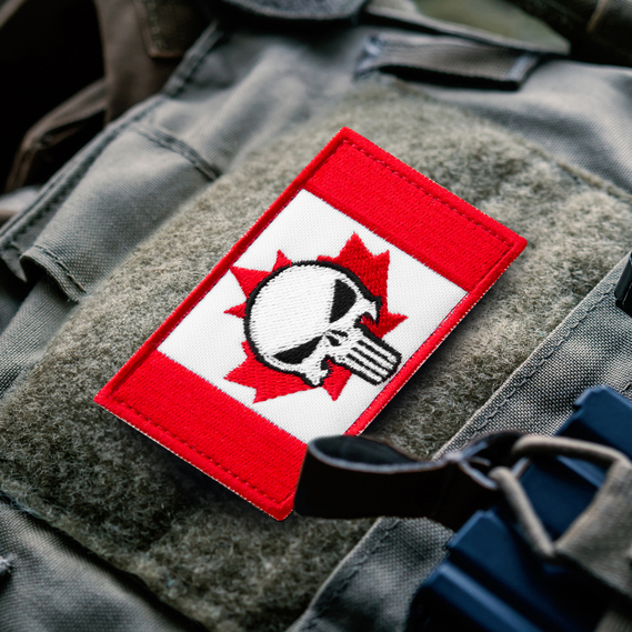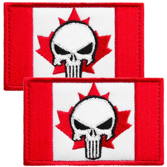 Набор шевронов 2 шт с липучкой Череп Карателя на Флаге Канады, Флаг Канады, вышитый патч нашивка 5х8 см