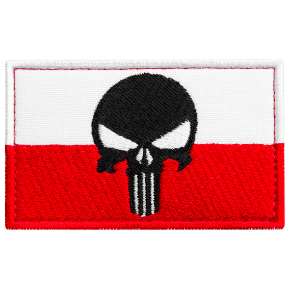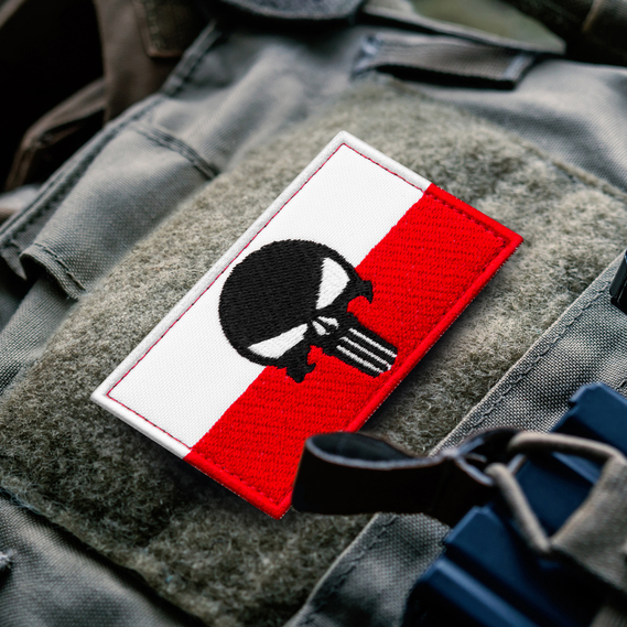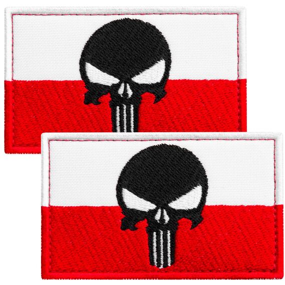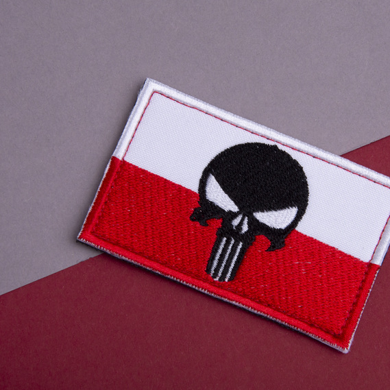 Набор шевронов 2 шт с липучкой Череп Карателя Флаг Польши 5х8 см, вышитый патч нашивка
